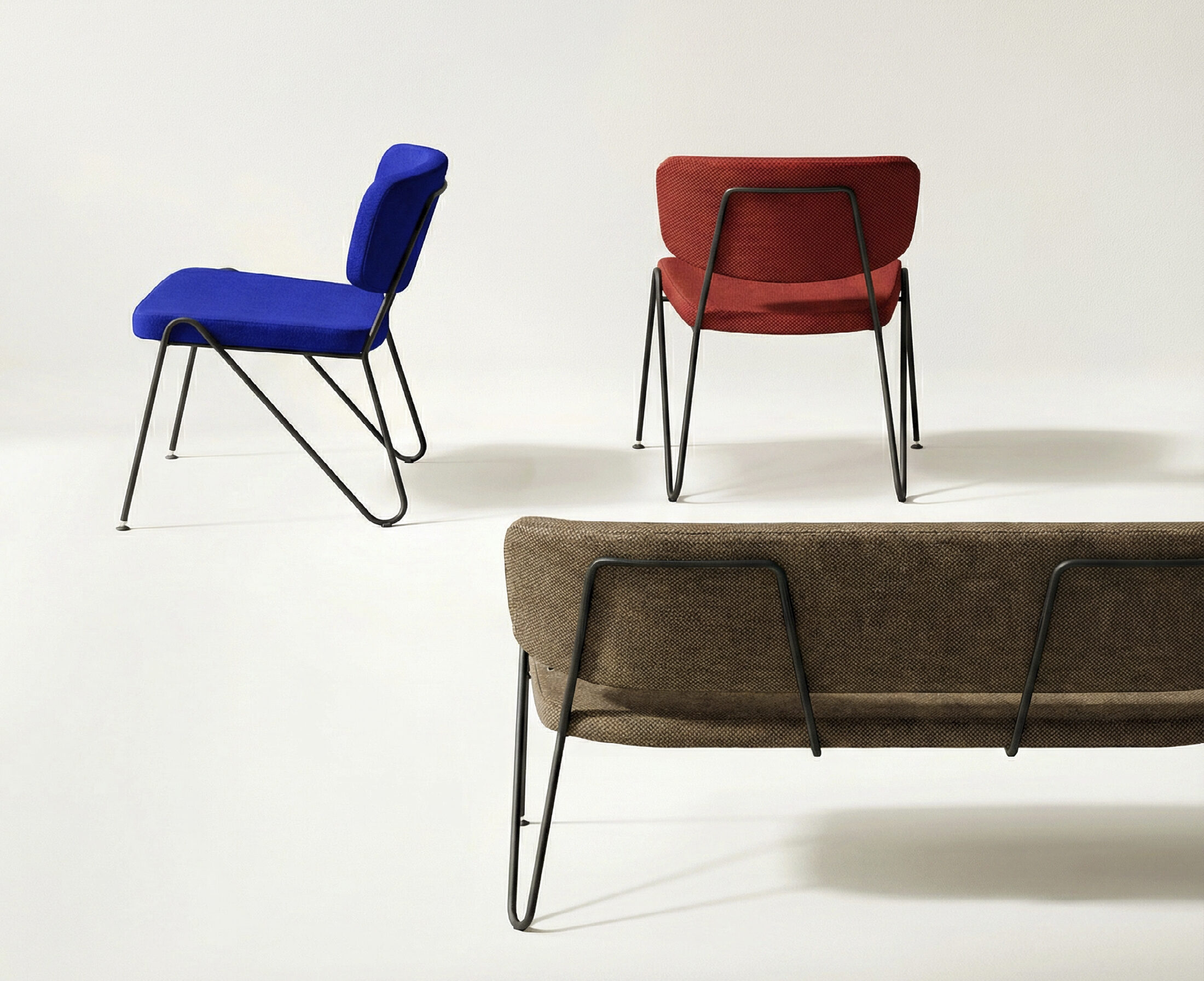 Effortlessly modern, the F1 features a hairpin-inspired steel frame that seamlessly flows from backrest to legs balancing lightness with durability